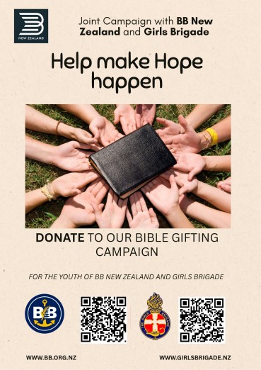 BB New Zealand and Girls’ Brigade New Zealand are partnering with The Bible Society to run a bold campaign: to fund and print 3,000 Bibles to be distributed in 2026.